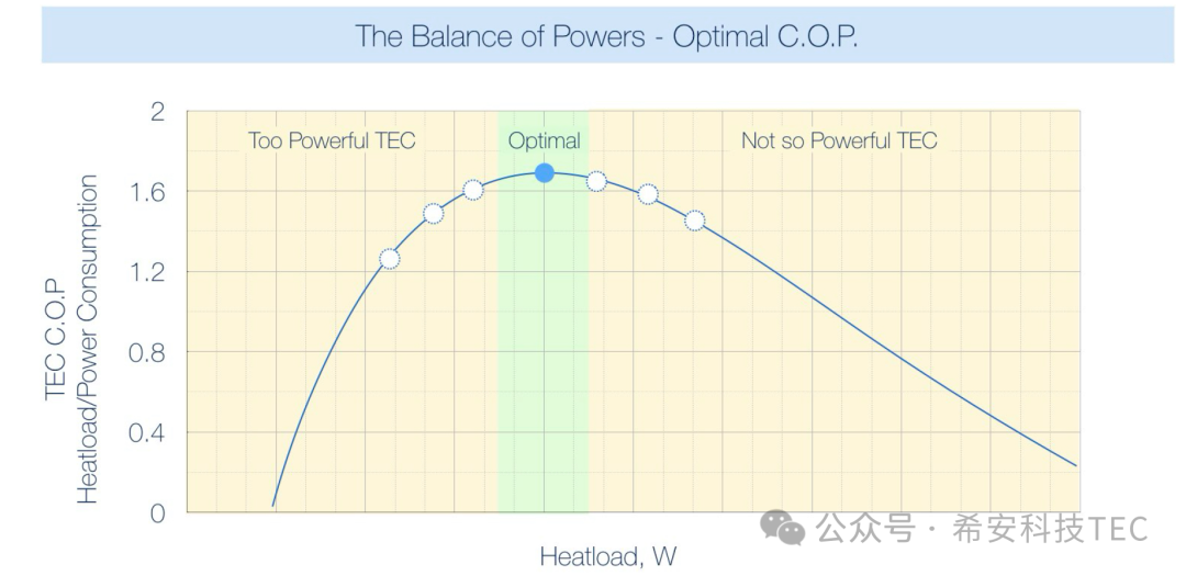 3. Zoals weergegeven in de volgende afbeelding heeft elke TEC een optimaal belastingsbereik (de hoogste COP-waarde) wanneer Dt wordt bepaald.